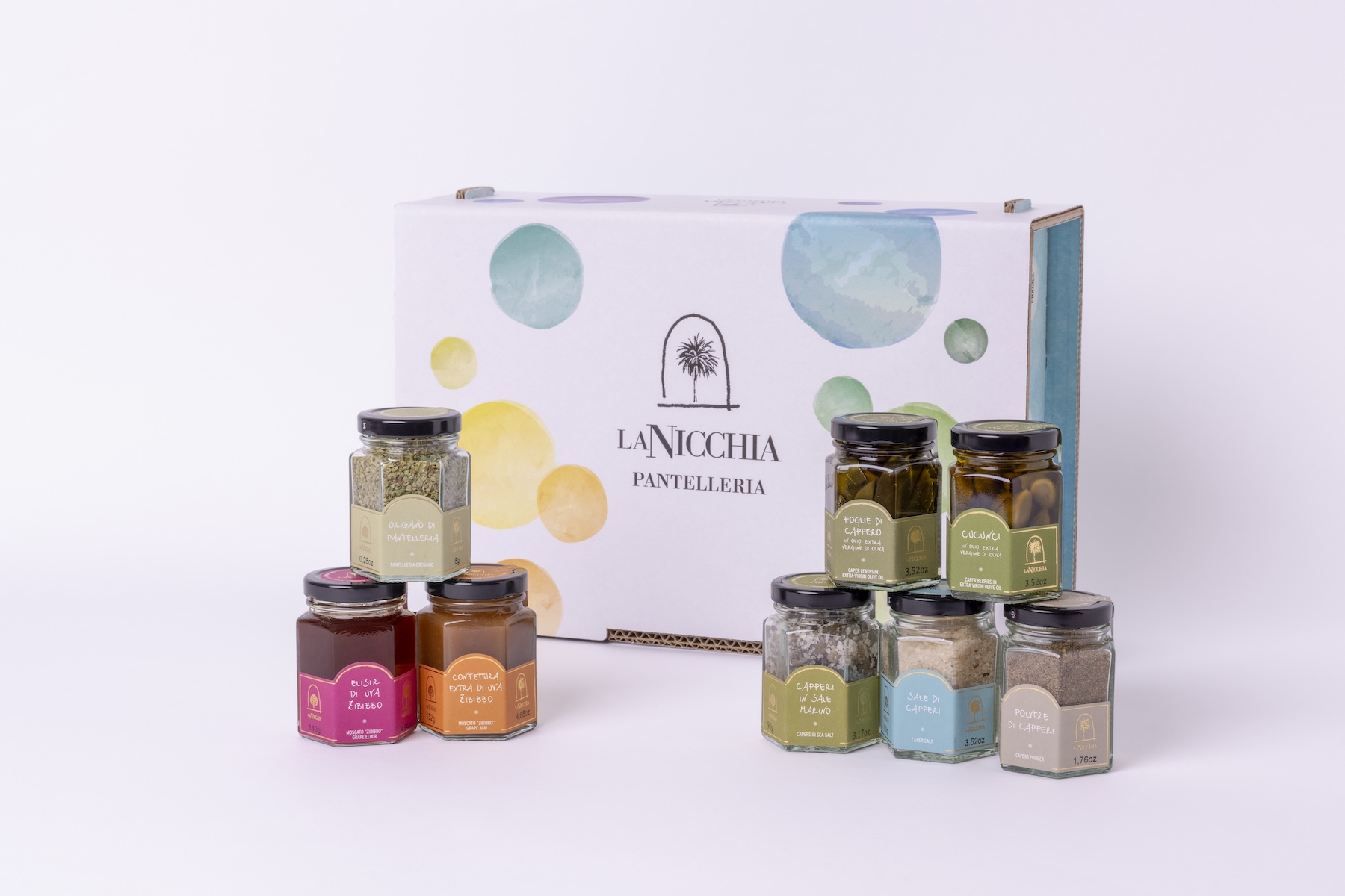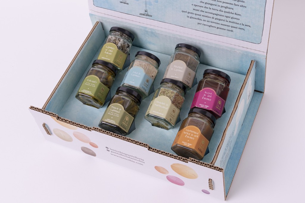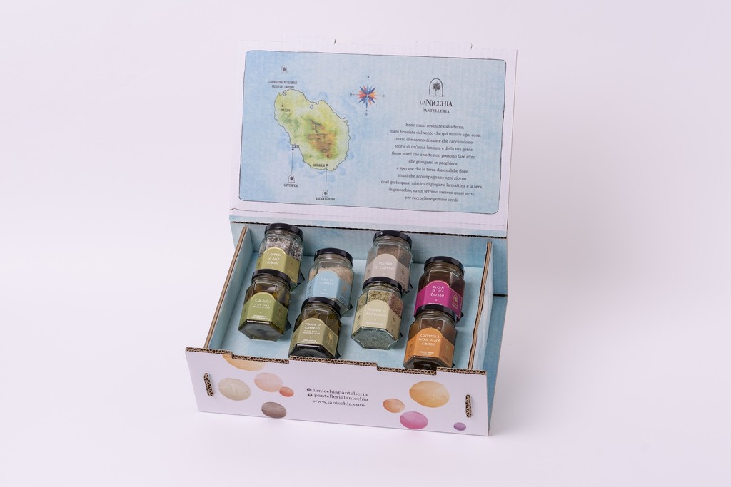Una raccolta di aromi e consistenze capaci di evocare i diversi tratti dell’isola. Capperi in sale, origano coltivato a Pantelleria, foglie di cappero in olio e cucunci si alternano a note dolci come la confettura d’uva e l’elisir di uva zibibbo, creando un equilibrio tra intensità e delicatezza. Il sale e la polvere di capperi completano la selezione con accenti decisi e versatili. È una proposta pensata per chi ama trasformare ogni piatto in un’esperienza sensoriale, dove l’essenza di Pantelleria si rivela attraverso gesti semplici e sapori distintivi.