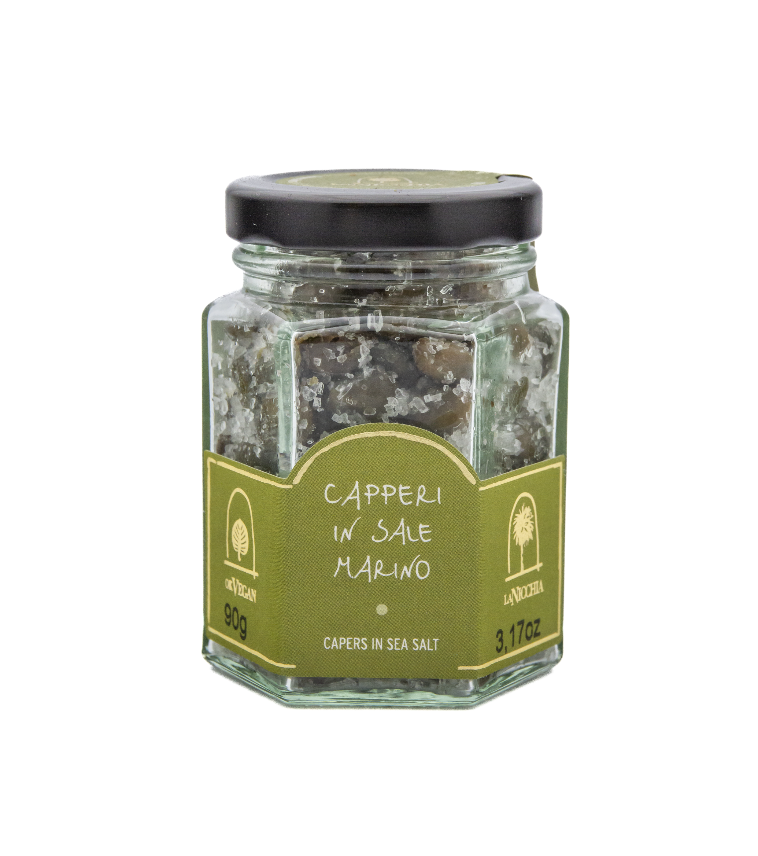 Capperi coltivati nei nostri campi e conservati in sale marino. Ideali per guarnire piatti di carne e pesce sia alla brace che al forno. Sodi e croccanti