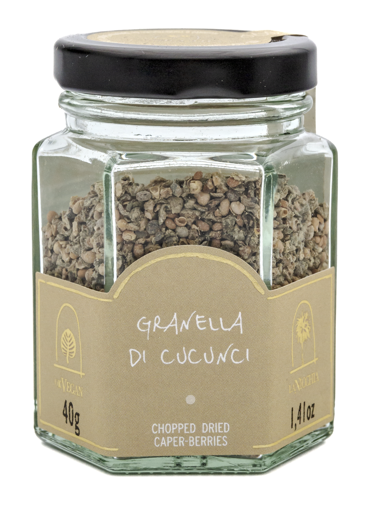Frutti della pianta del cappero di grosse dimensioni dissalati, essiccati, sbriciolati e setacciati. Risulta un prodotto croccante con i semi della pianta e parte della polpa del frutto che conferiscono ai piatti una nota aromatica e croccante.