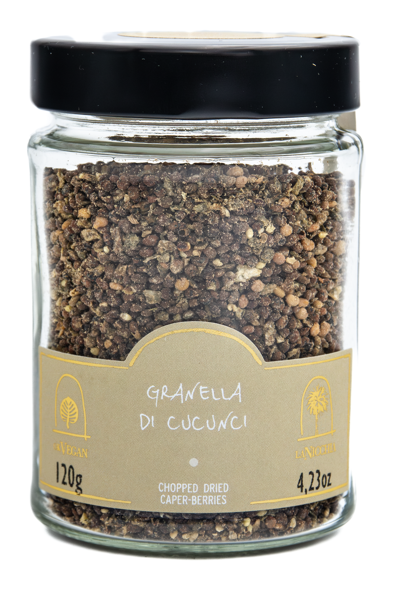 Frutti della pianta del cappero di grosse dimensioni dissalati, essiccati, sbriciolati e setacciati. Risulta un prodotto croccante con i semi della pianta e parte della polpa del frutto che conferiscono ai piatti una nota aromatica e croccante.